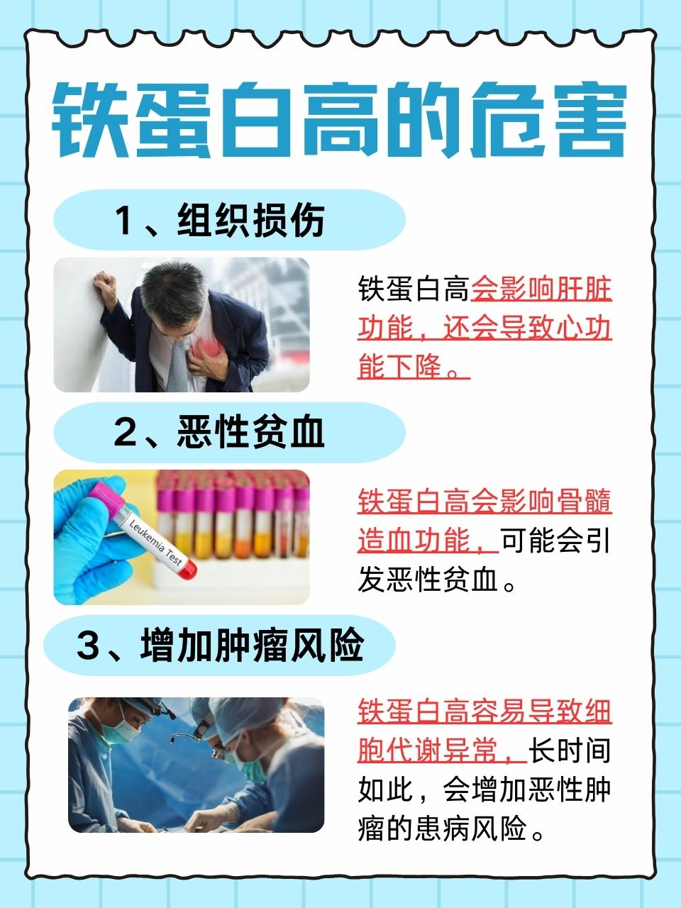 3、增加肿瘤风险:铁蛋白高与某些类型的肿瘤相关联,如肝癌、胰腺癌等,这可能是因为肿瘤细胞的铁代谢异常,导致铁蛋白水平异常升高。虽然铁蛋白水平升高并不能直接确诊为肿瘤,但它可能提示存在潜在的肿瘤风险。
