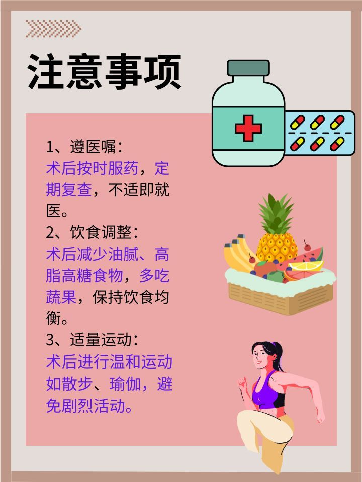 2、术后营养得注意:因为消化不太好,我担心营养跟不上。医生提醒我,手术后要特别注意补充营养,尤其是维生素和矿物质,保持健康。