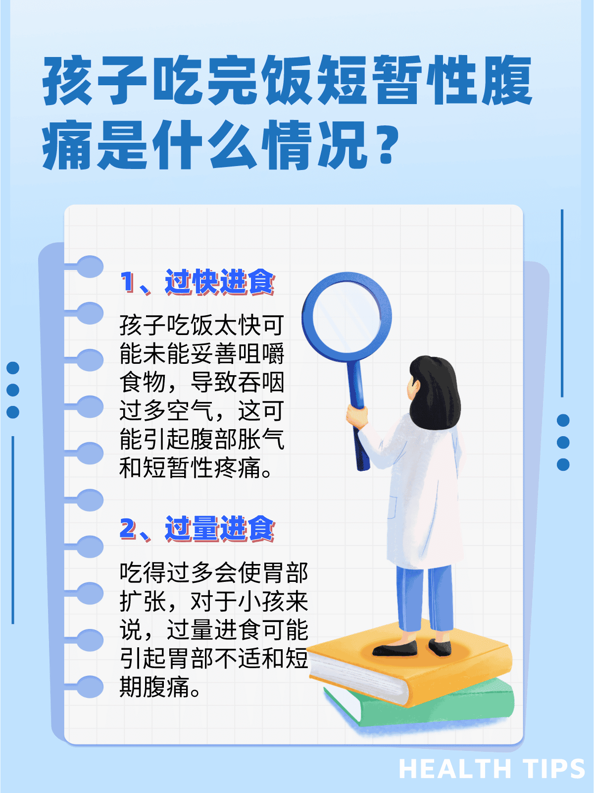 在一个初夏下午,小强和他的妈妈走进了我的诊室。小强,一个活泼的七岁男孩,看起来有些不自在,他的妈妈则显得相当焦虑。她向我解释说,最近小强在吃完饭后会经历一段短暂的腹痛,这种情况已经持续了一周左右。