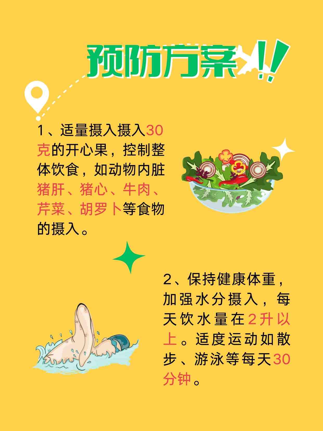 2. 控制整体饮食:除了开心果,痛风患者还需关注整体饮食结构。限制高嘌呤食物摄入,如动物内脏猪肝、猪心、牛肉等,并增加低嘌呤食物如芹菜、胡罗卜等食物的摄入。