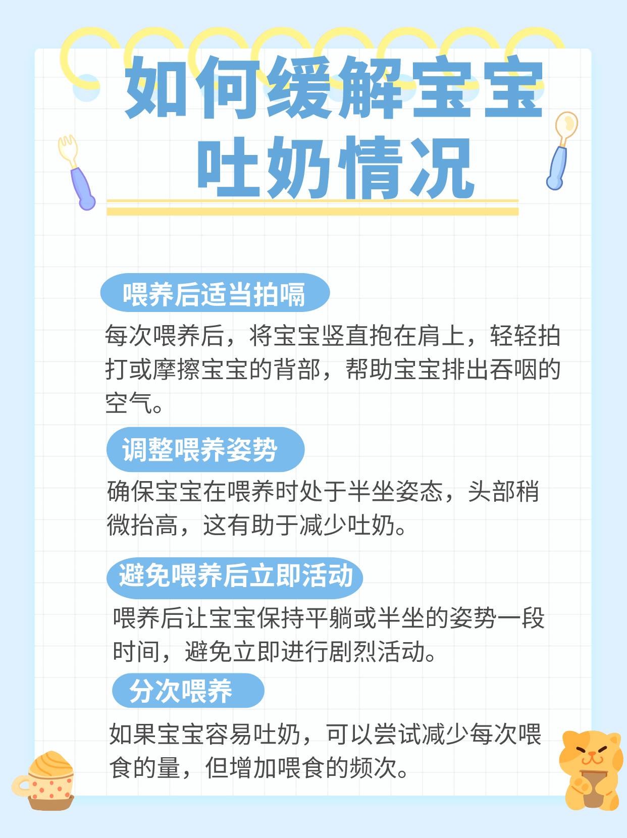 于是,我建议妈妈调整喂奶方式,少量多次喂奶,并调整姿势,让宝宝稍微垂直一些,喂奶后轻拍宝宝背部,帮助其打嗝,以减少吐奶。如果这些方法不起作用,我们可能需要进一步检查。