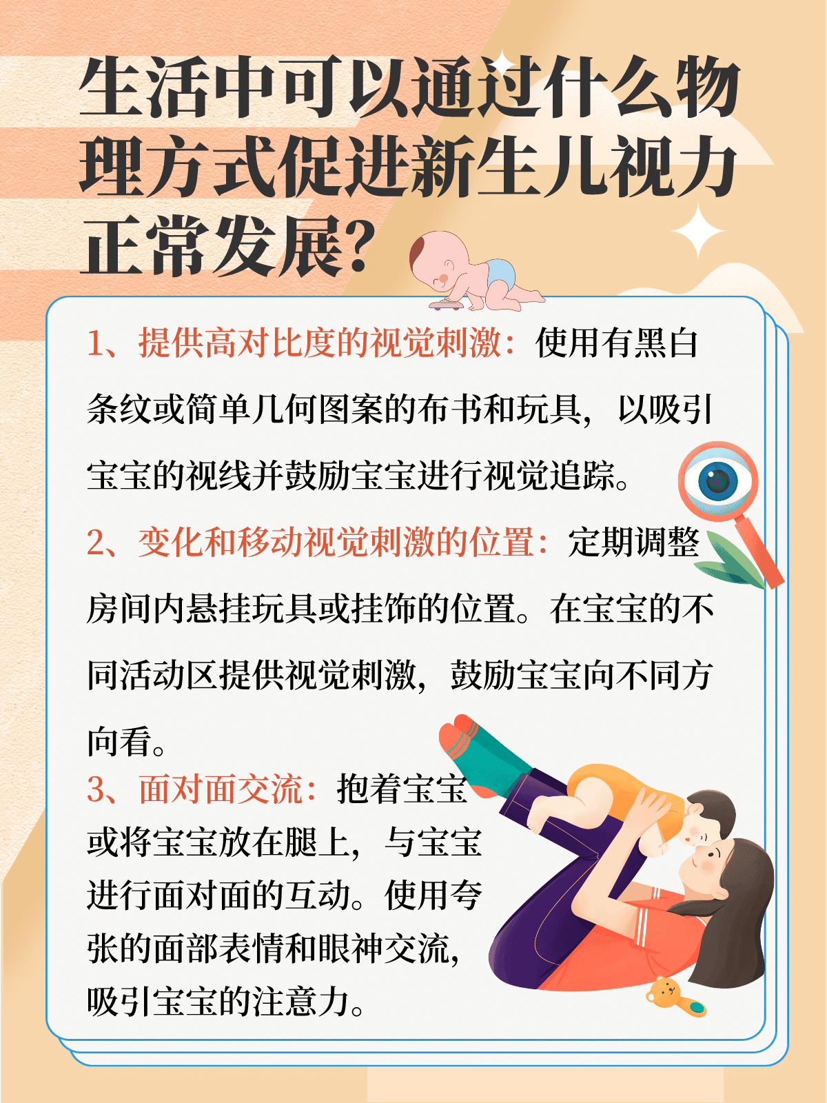 接下来的几周里,我们根据医生的建议,为小豆豆进行了一系列的视觉矫正训练。这包括了一些简单的家庭视觉刺激活动,比如用色彩鲜艳的玩具吸引他的注意力,让他的眼睛能够跟随移动的物体。此外,我们还定期带他回医院进行复查,以监控他的恢复情况。