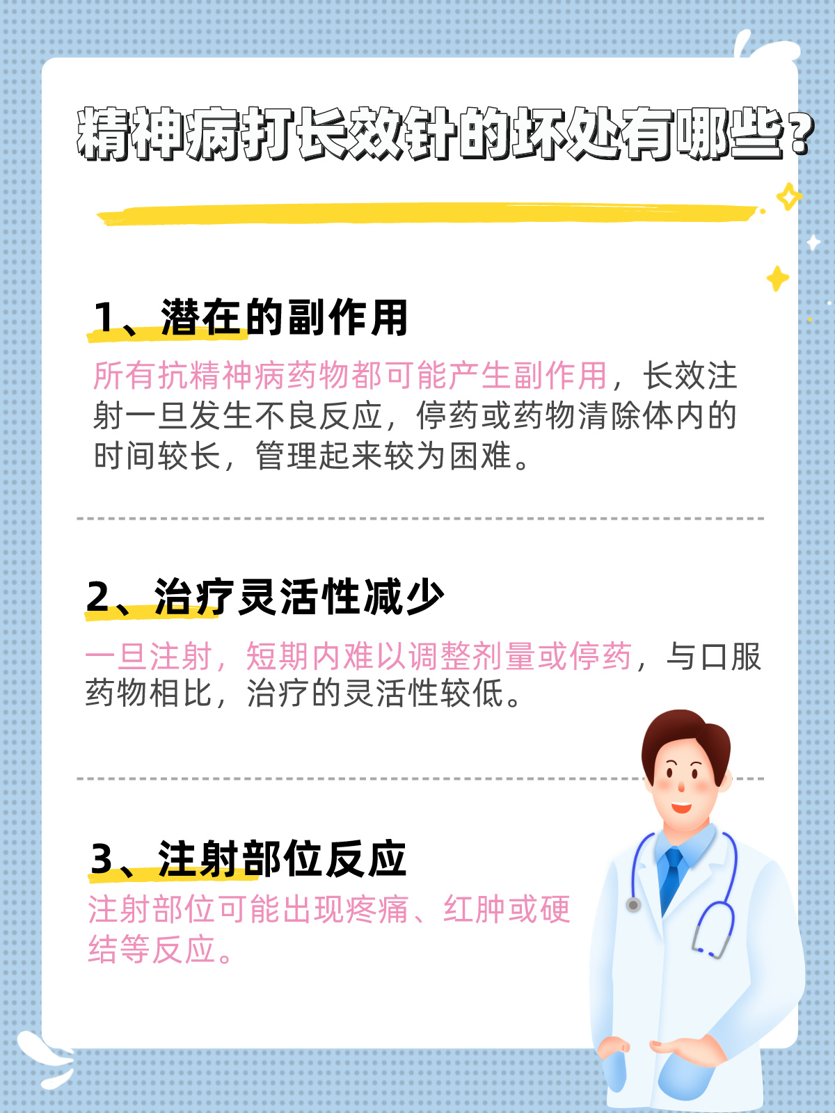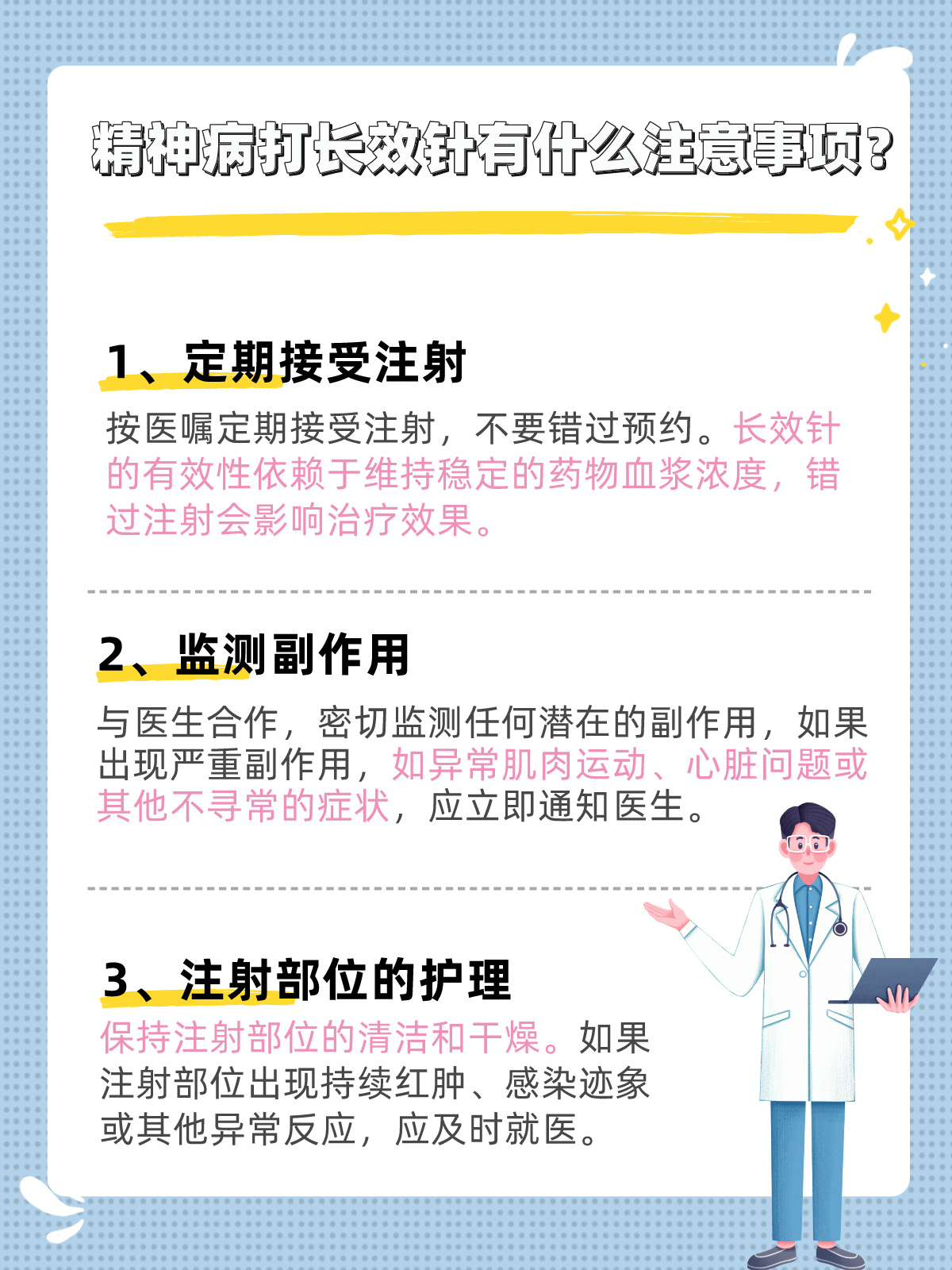 几个月的治疗后,李先生的恢复进展顺利。尽管他偶尔还会经历一些轻微的副作用,比如注射部位的不适,但这些都在我们的预期和控制之内。李先生对长效针剂治疗感到满意,并感谢我们为他提供的个性化治疗方案。