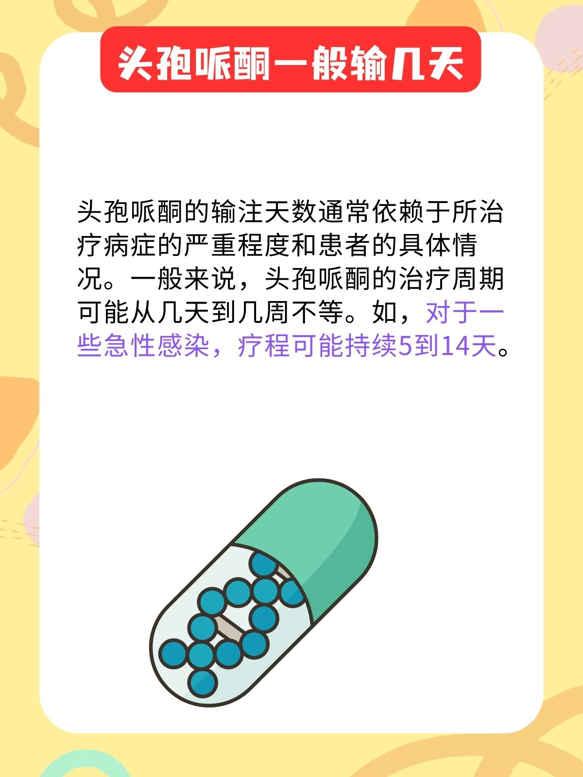 我解释给宫先生听,头孢哌酮输液通常需要连续使用几天,根据患者的反应和恢复情况来调整。在宫先生这个案例中,我决定先给他安排一个5天的治疗周期,每天一次。