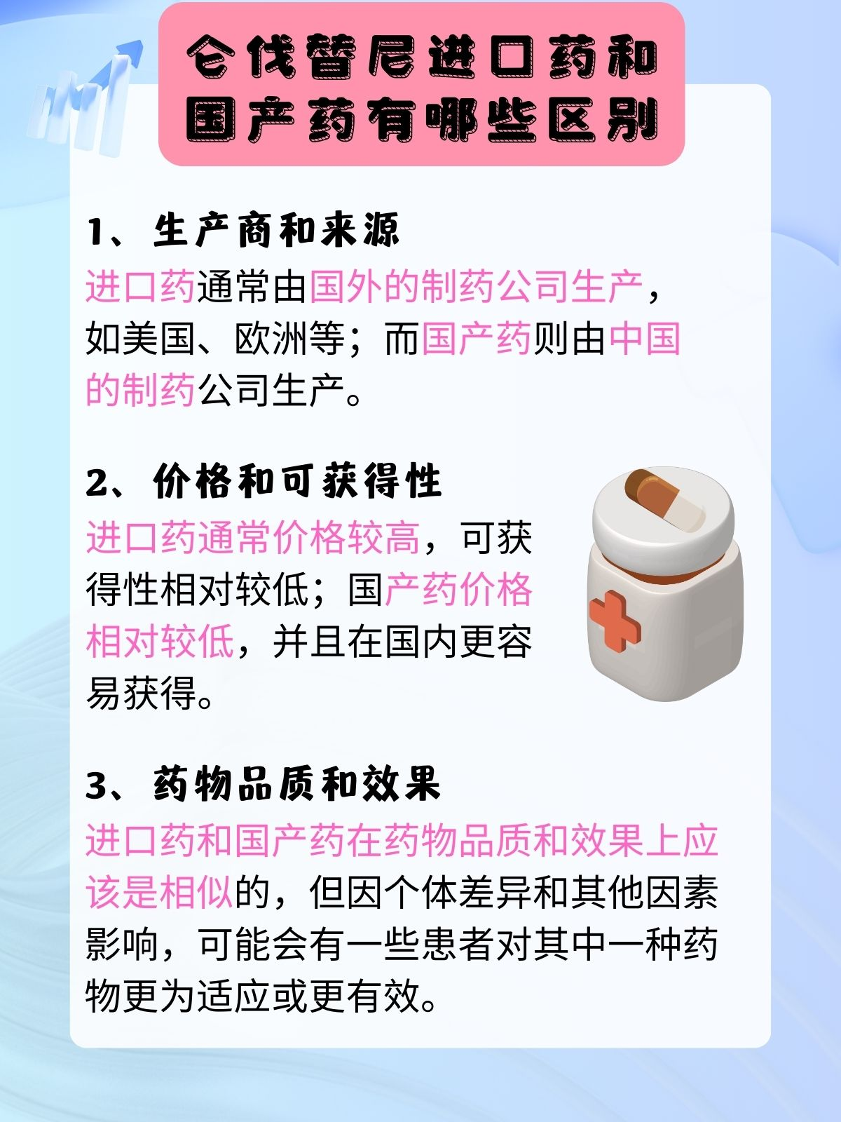 医生告诉小明,仑伐替尼分为进口和国产两种,药物成分相同,但可能会有一些细微的差异,比如药效、副作用等方面,医生建议小明根据自己的实际情况和医生的建议选择适合自己的药物。